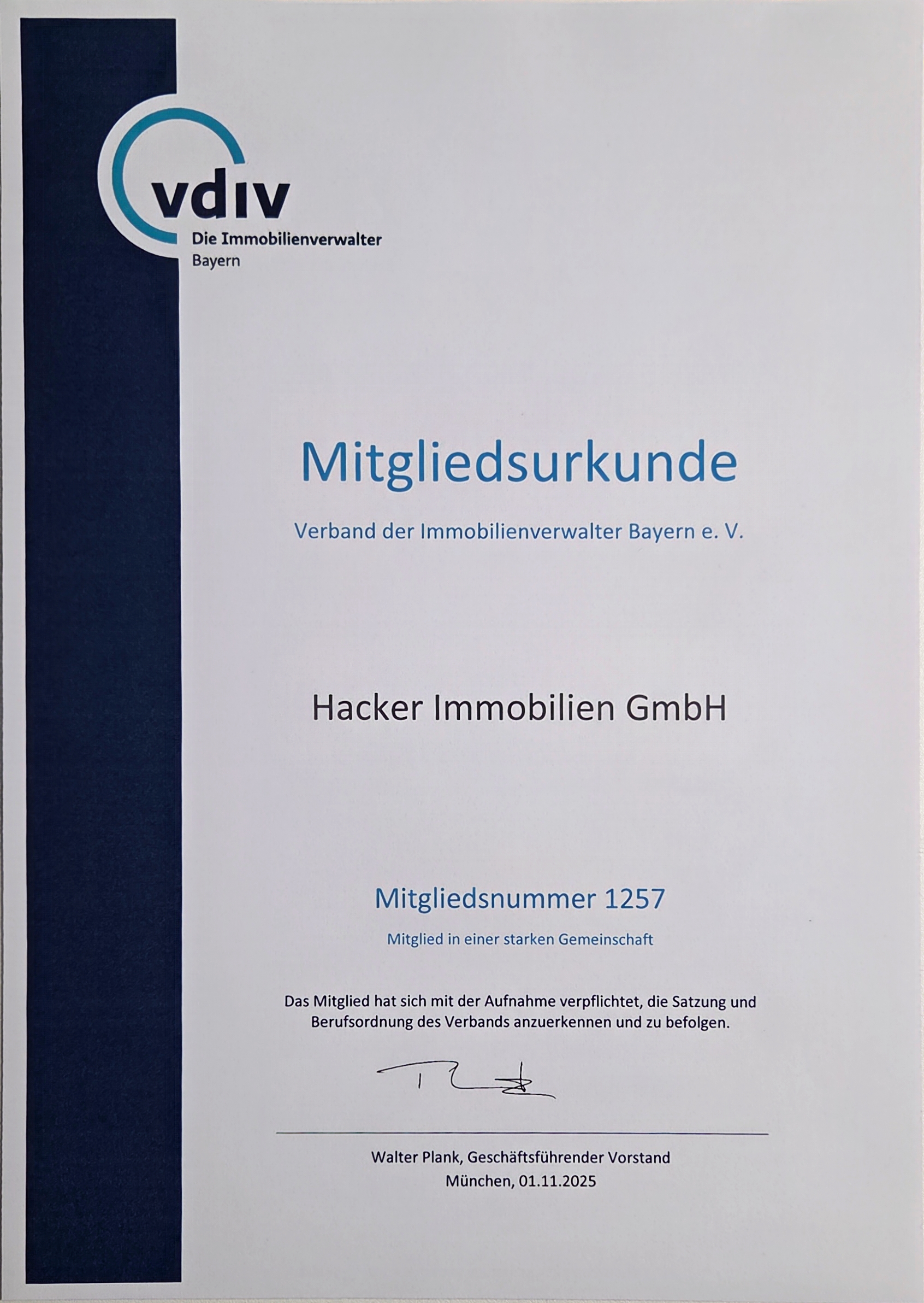 Mitglied des Verbands deutscher Immobilienverwalter