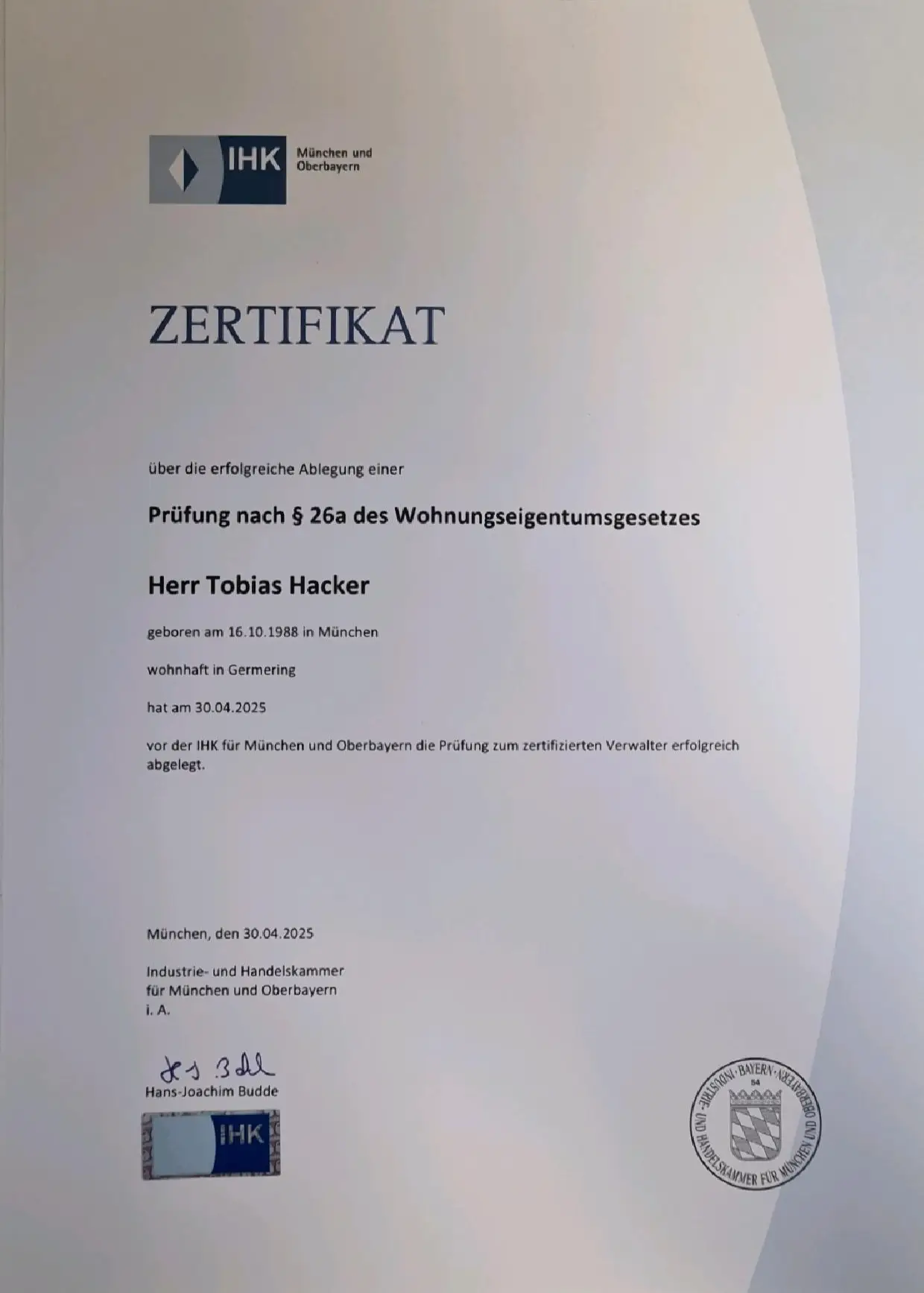Zertifizierter Verwalter nach §26a WEG